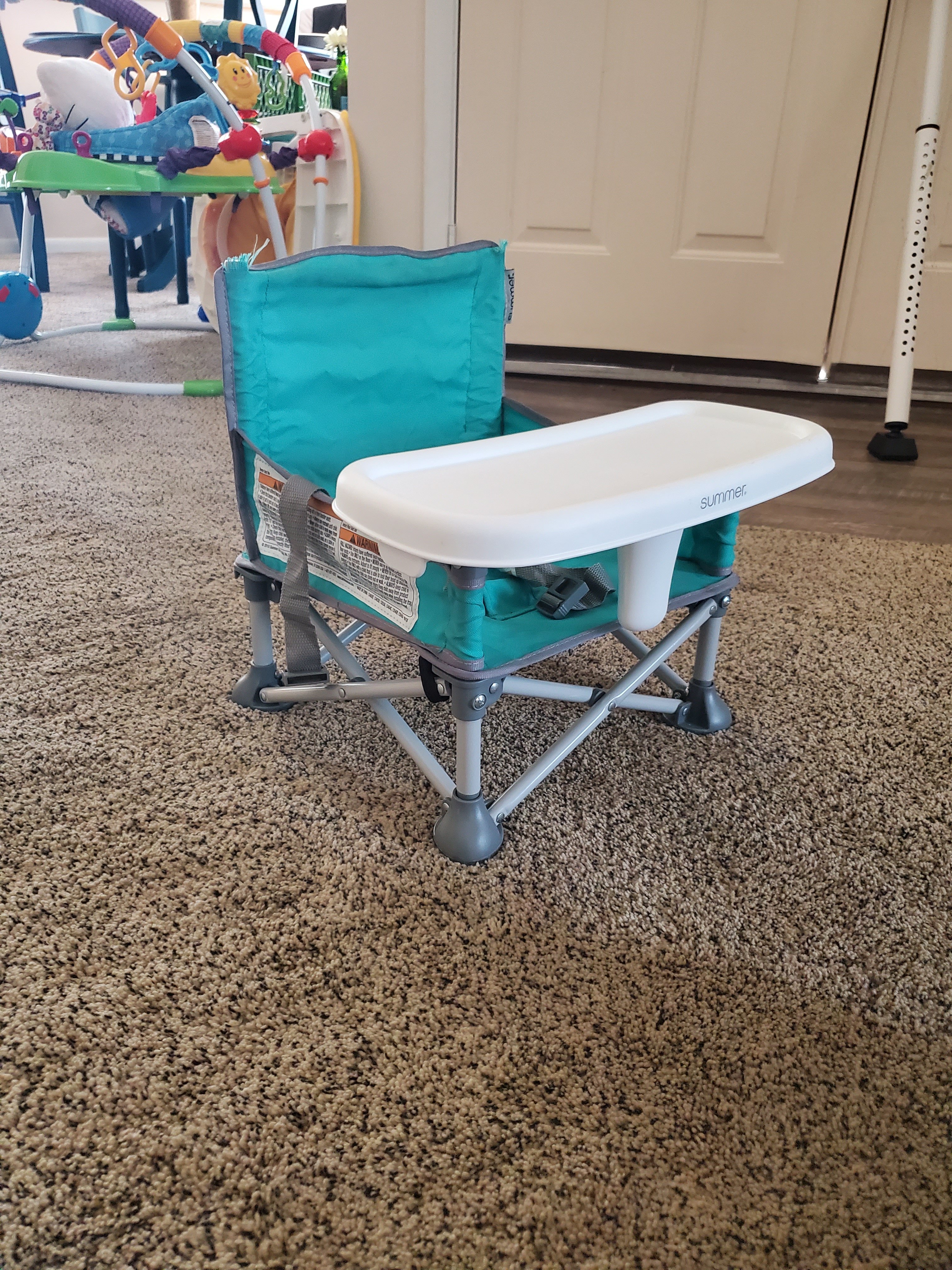 We use our chair every single day, and I’ve recommended it to at least 5 people. Since the majority of our meals are eaten in the living room it is more convenient for Remy to sit in his portable chair instead of his high chair. And because we can remove the tray this chair is the perfect place for him to sit when he isn’t running around the house.