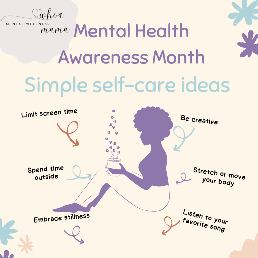 May is Mental Health Awareness Month and Maternal Mental Health Awareness Month. So, I want to challenge you to spend at least 5 minutes each day supporting your mental health. It takes 21 days to create a habit and my hope is you will create a new habit around prioritizing your mental health.